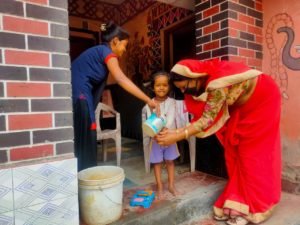 उसीक्रम मे आगनबाड़ी कार्यकर्ताओं ने घर-घर जाकर उनका खाता नंबर और मोबाइल नंबर शासन को उपलब्ध कराया है! आंगनवाड़ी वर्कर शालीनी सरकारी आदेश का पालन करते हुए डोर टू डोर जाकर पुष्टाहार भी बांट रही है।