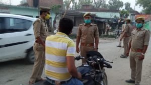 आपको बता दे की पकड़ी बाजार स्थित पुलिस चौकी इंचार्ज महेंद्र मोहन मिश्रा ने अपनी टीम के साथ हर दोपहिया वाहन चार पहिया वाहन की बारीकी से जांच कर रहे हैं बिना वजह बाइक पर दो सवारी बैठे बिना हेलमेट पहने बिना मास्क लगाए लोगों हिदायत देते हुए बाइक का चालान काटा और चार पहिया वाहन की जांच करते हुए हिदायत दिए की बिना जरूरत अनावश्यक बिना मास्क लगाए घर से बाहर ना निकले