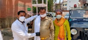 देश जहां  आज कोरोना जैसी घातक बीमारियों सेआज जूझ रहा है इस कारण लोगों के अंदर काफी भय व्याप्त हो चुका है लगातार लाक डाउन के चलते दूरदराज से मुंबई दिल्ली गुजरात से आ रहे श्रमिक मजदूर सरकार के द्वारा साधन या पैदल या अपने निजी साधनों से आकर नगर के और गांव के स्कूलों में क्वॉरेंटाइन हुए हैं जिनकी सुरक्षा को लेकर के नगर के बस स्टेशन स्थित अजय टीवी सेंटर और गंगा हैंडलूम के मालिक अजय कुमार गुप्ता द्वारा कोरोना योद्धाओं और क्वॉरेंटाइन मे रह रहे लोगों के लिए मास्क, गमछा, सैनिटाइजर ग्लोब्स पी ,पी, कीट, वितरण किया गया
