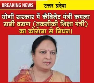 कैबिनेट मे तकनीकी शिक्षा मंत्री रही कमला वरुण की पीजीआई मे इलाज के दौरान हुआ निधन आपको बताना जरूरी है कि वह कोरोना पॉजिटव थीं तथा कानपुर के घाटमपुर से विधायक थीं ।