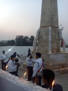 गोरखपुर जनपद के चौरीचौरा क्षेत्र के माता तरकुलही धाम प्रांगण में स्थित अमर शहीद बाबू बंधू सिंह स्मारक पर गोरखपुर के बैंड़ टीम के द्वारा राष्ट्रीय गीतों के धुन एवं मां तरकुलही देवी व्यापार मंडल वेलफेयर सोसाइटी एवं मां तरकुलही देवी चैरिटेबल ट्रस्ट के तरफ से पुलवामा हमले के 2 वर्ष पुरे होने पर शहीद जवानों को दीप प्रज्वलित कर किया गया नमन। 14 फरवरी 2021 दिन शनिवार को सायं काल 5:30 बजे माता तरकुलहा मंदिर के प्रांगण में स्थित अमर शहीद बाबू बंधु सिंह के स्मारक पर उत्तर प्रदेश पुलिस गोरखपुर की बैंड टीम के द्वारा राष्ट्रीय गीतों के धुन बजाकर तथा व्यापार मंडल तरकुलहा एवं चैरिटेबल ट्रस्ट तरकुलहा के पदाधिकारियों व्यापारियों के द्वारा दीप प्रज्वलित कर पुलवामा हमले के 2 वर्ष पूरे होने पर अमर जवानों को नमन किया गया।