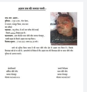 चौरीचौरा थानाक्षेत्र मे मिला रहस्यमयी तरीक़े से फेकागया अज्ञात युवक का शव ,शव को कब्जे मे लेकर पुलिस कर रही शव को शिनाख्त कराने का प्रयास