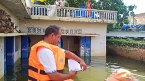 सेवाभारती आयाम के संपर्क प्रमुख योगेश पान्डेय ने बाढ़ग्रस्त क्षेत्र के लोगों में बितरण किया खाद्य सामाग्री