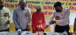 श्रमिक शिक्षा दिवस के अवसर पर दंतोपंत ठेंगड़ी श्रमिक शिक्षा बोर्ड श्रम एवं रोजगार मंत्रालय भारत सरकार के क्षेत्रीय कार्यालय गोरखपुर द्वारा आयोजित रफी अहमद कीदवाई इंटर कॉलेज के महाराणा प्रताप सभागार में प्रभारी क्षेत्रीय निदेशक एमएस अख्तर द्वारा आयोजित किया गया इस कार्यक्रम के मुख्य अतिथि केएल गुप्ता महामंत्री नरमू पूर्वोत्तर रेलवे गोरखपुर ने द्वीप प्रज्वलित करके शुभ आरंभ करते करते हुए श्रमिकों के हित में दंतोपंत ठेकड़ी श्रमिक शिक्षा बोर्ड के कार्यों को बताते हुए श्रमिकों के हित की चर्चा की एवं श्रमिक कल्याण को लेकर किए गए कार्यों का बोर्ड की सराहना की कार्यक्रम का संबोधन डा.महेश सिंह प्रधानाचार्य रफी अहमद किदवई इंटर कॉलेज एम जिलानी पूर्व क्षेत्रीय निदेशक श्रमिक शिक्षा बोर्ड कृष्णकांत यादव सहायक श्रम आयुक्त गोरखपुर आनंद कुमार राय प्रवक्ता रफी अहमद किदवई इंटर कॉलेज गोरखपुर धन्यवाद ज्ञापन एमएस हसन शिक्षा अधिकारी एवं कार्यक्रम का संचालन प्रमोद कुमार शिक्षा अधिकारी ने किया कार्यक्रम में महिला एवं पुरुष ने के साथ सामाजिक कार्यकर्ता एवं स्वयंसेवी संस्था के प्रतिनिधि गण भाग लेकर कार्यक्रम को सफल बनाया कार्यक्रम की अध्यक्षता पूर्व क्षेत्रीय निदेशक महातम सिंह के द्वारा कार्यक्रम को संबोधन करते हुए समाप्त किया गया आज के कार्यक्रम में प्रमोद कुमार शिक्षा अधिकारी