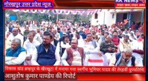 खबर जनपद गोरखपुर के विकास खंड ब्रम्हपुर क्षेत्र के खैराखूटा से है जहां तेईस जनवरी को समाजवादी नेता स्वर्गीय भूमिधर यादव की 13 वी पुण्यतिथि मनाई गई जिसकी अध्यक्षता समाजवादी पार्टी के वरिष्ठ नेता पूर्व जिला उपाध्यक्ष सतीश त्रिपाठी ने किया तथा संचालन विधानसभा उपाध्यक्ष शत्रुजीत त्रिपाठी द्वारा किया गया वहीं कार्यक्रम में मुख्य अतिथि के रूप में समाजवादी पार्टी गोरखपुर के निवर्तमान जिला अध्यक्ष अवधेश यादव उपस्थित रहे कार्यक्रम को संबोधित करते हुए मुख्य अतिथि अवधेश यादव ने कहा कि भूमिधर यादव समाजवादी पार्टी की एक सच्चे सिपाही थे जिन्होंने आजीवन समाजवादी झंडे को बुलंद किया उनकी कृतियों को भुलाया नहीं जा सकता गरीबों मजदूरों की आवाज बनकर काम करते थे कार्यक्रम में पूर्व जिला अध्यक्ष नगीना प्रसाद साहनी एडवोकेट ने कहा कि आज भूमिधर यादव की कमी खल रही है आज होती तो निश्चित तौर पर क्षेत्र का चौमुखी विकास करने में उनका महत्वपूर्ण योगदान रहा है पूर्व जिला अध्यक्ष प्रहलाद यादव ने कहा कि भूमिधर यादव समाज के दबे कुचले व्यक्तियों की मदद करते थे सम्मान के साथ कोई समझौता नहीं करते थे पूर्व जिला अध्यक्ष रजनीश यादव ने कहा कि आज भूमिधर यादव हम लोगों के बीच नहीं है लेकिन चौरी चौरा में उनके द्वारा श्रीमती शारदा देवी के साथ जो उन्होंने विकास की गति दिया था वह निश्चित तौर पर भुला नहीं जा सकता उनकी कमी सदैव खलती रहेगी कार्यक्रम के आयोजक मुन्नी लाल यादव ने आए हुए सभी अतिथियों का आभार प्रकट करते हुए कहां की अपने भाई के सपनों को साकार करने के लिए समाजवादी झंडे को चौरी चौरा में बुलंदियों तक पहुंचाने का काम करेंगे कार्यक्रम महानगर अध्यक्ष कृष्ण कुमार त्रिपाठी में मुख्य रूप से पूर्व विधायक यशपाल रावत मारकंडे यादव बृजेश गौतम अखिलेश यादव मनुरोजन यादव नरसिंह यादव जयप्रकाश यादव राम लखन पासवान शाहरुख एडवोकेट बृज नाथ मौर्या सांस्कृतिक प्रकोष्ठ के प्रदेश अध्यक्ष धर्मेंद्र सिंह सोलंकी दयानंद विद्रोही श्याम मिलन यादव आध्या शंकर दुबे अशोक धर दुबे प्रधान प्रदीप पासवान अरविंद पासवान कैप्टन रामचंद्र वकील यादव सुभाष साहनी वीरेंद्र यादव जयप्रकाश यादव जय गोविंद यादव देवेंद्र यादव फखरुद्दीन अलबेला यादव गौतम यादव राजेंद्र जयसवाल नौशाद अहमद डॉक्टर अमरीश मालवीय श्याम मिलन यादव पूर्व प्रधान कन्हैया लाल यादव सहित तमाम गणमान्य मौजूद रहे।