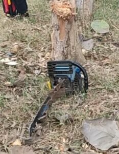 खबर गोरखपुर जनपद से है जहां बीना परमीशन के धड़ल्ले से पेड़ो का कटान जारी है कुछ ऐसा ही मामला गोरखपुर जनपद के चौरीचौरा तहसील क्षेत्र के ग्राम सभा लक्ष्मनपुर टोला इमिलियहवा का है जहां एक ब्यक्ती द्वारा बिना परमिशन के ही अपने खेत से लगभग आधा दर्जन से अधिक सागौन का सूखा पेड़ का कटान कराया जा रहा है जिसकी भनक लगते ही जब क्षेत्र में भ्रमण कर रहे मिडिया कर्मियों को हुई तो वे मामले की जानकारी के लिए टीम पहुंची तो कटान करा रहे ब्यक्ती ने कहा कि हम अपने पेड़ काट रहे हैं वह भी सूखा पेड़ है