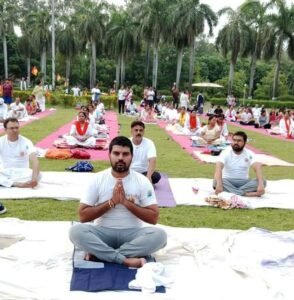 योगाभ्यासियों द्वारा अन्त मे शांति पाठ का एक स्वर मे उच्चारण करके कार्यक्रम का समापन किया गया।