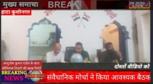 खबर उत्तर प्रदेश के जनपद कुशीनगर के हाटा नगरपालिका क्षेत्र से है जहां के फलब्यवसाई समाजसेवी राशिद खान नें एक पत्रकार वार्ता कर बताया कि गरीब जन संघर्ष संवैधानिक मोर्चा के गठन का मूल उद्देश्य गरीबों असहायों को सहयोग करने के नियत से हुआ है वही मजे की बात यह है कि हाटा नगर के इस समाजसेवी ने पत्रकारों के हितों को ध्यान में रखते हुए उनके लिए भी कुछ करनें का मन बनाया है बैठक के दौरान राष्ट्रीय अध्यक्ष राशिद खान के अलावा बैठक मे डाक्टर अकबर अली,मुहम्मद नूर आलम मुन्ना भाई संगठन संयोजक विशाल पान्डेय, शुभम मिश्रा मौजूद रहे!