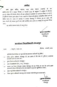 अपर मुख्य सचिव उत्तर प्रदेश शासन लखनऊ ने अपने पत्र संख्या 218/37-1-2024दिनांक17जनवरी के अनुक्रम मे एक पत्र भेजकर 22जनवरी को अयोध्या मे होने वाले भगवान श्रीराम के प्राण प्रतिष्ठा कार्यक्रम के दिन क्षेत्र में