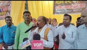 (देवराड़ पिपरा में संबोधित करते हाटा विधायक मोहन वर्मा)