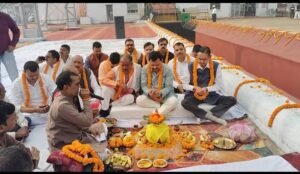 मिल परिसर में पूजन करते सांसद, विधायक व मिल प्रबंधन