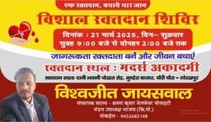 21 मार्च 2025 को आइए हम सभी मिलकर अपने शहीदों को याद करें और उनके सम्मान में रक्तदान करें।