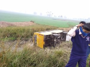 कुशीनगर जनपद के कप्तानगंज थाना क्षेत्र के सुधियानी मोड़ पर एक बिद्यालय के अनियंत्रित बस के पलटने से बस मै बैठे एक छात्र आसिफ को सफल इलाज हेतु गोरखपुर भेजा गया वहीं शेष बच्चों को ग्रामीणों के सहायता से पलटी बस से बाहर निकाल कर एम्बुलेंस से कप्तान गंज भेजा गया जहाँ प्राथमिक उपचार के बाद बच्चों को उनके परिजनों को सौप दिया गया।